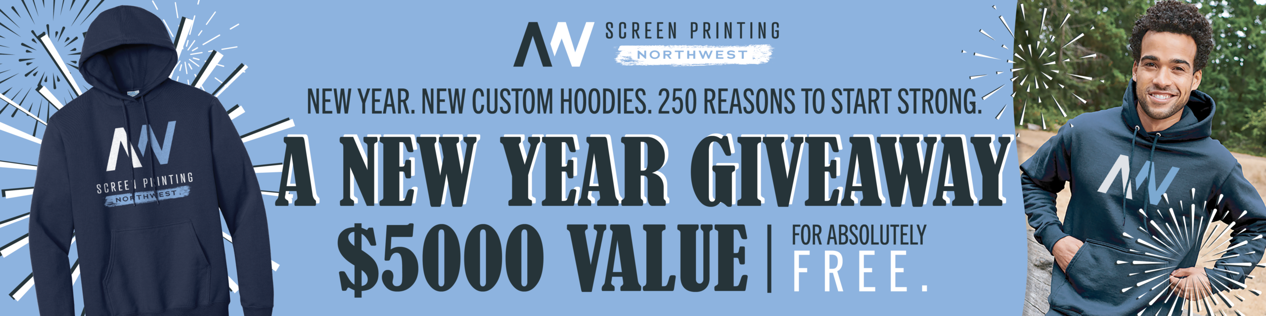 Screen Printing Northwest is giving away 250 FREE Port & Co. hoodies screen printed with YOUR CUSTOM LOGO OR DESIGN to one deserving company for the new year!